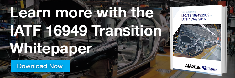 AIAG, in partnership with Plexus International, has put together a free 16949 transition whitepaper that details the steps for a smooth transition from the old ISO/TS 16949 to the new IATF 16949.
