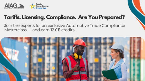 Our new, exclusive Automotive Trade Compliance Masterclass — developed in partnership with global trade leaders Gianluca Romano and Alexandre Lira, founders of Trade Compliance Executive (TCE) — dives deep into today’s most pressing trade compliance challenges, from regulatory shifts and risk mitigation to industry best practices and new technologies.
